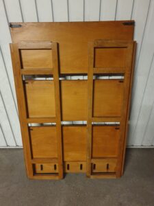 En bois de hêtre et placage, entièrement rénovée et revernie.