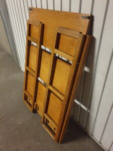 Elle est pliante, empilable et très stable, comporte des traces d’usage.