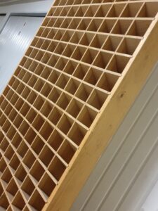 Meuble de métier à casiers en bois