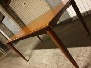 Très bon état, légères traces d’usure et trois petites marques très discrètes plus claires sur le plateau.