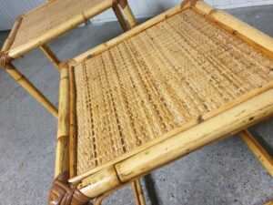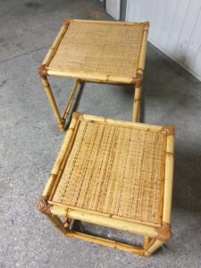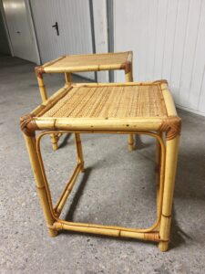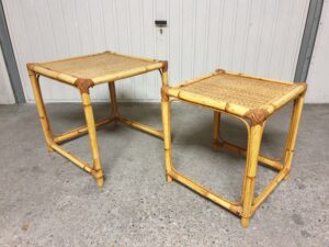Jolie paire de tables basses bout de canapé gigognes en rotin des années 60.
